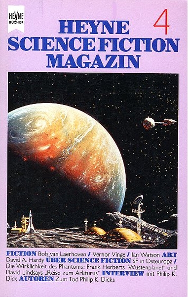 Klappentext: Das erste deutsche Science Fiction Magazin imTaschenbuch bringt Erzählungen und Kurzgeschichten der bedeutendsten SF-Autoren aus aller Welt, Interviews, Informationen über die Science Fiction Szene im In-und Ausland, Autorenporträts, Buchbesprechungen, Berichte über aufsehenerregende wissenschaftliche und technische Unternehmungen und spekulative Beiträge über Phänomene in den Grenzgebieten der Wissenschaft. HEYNE SCIENCE FICTION MAGAZIN 4 In diesem Band finden Sie neben einigen Kurzgeschichten internationaler Autoren eine Ubersicht von Werner Fuchs über die verschiedenen Science Fiction- und Fantasy-Spiele, einen Aufsatz über die Realitätskrise in der Science Fiction von Dietrich Wachler, dargestellt am Beispiel von Frank Herberts »Wüstenplanet« und David Lindsays »Reise zum Arkturus", das letzte Interview mit Philip K. Dick vor seinem Tode und einen Nachruf auf den verstorbenen Autor von Joachim Körber, ein Porträt des englischen SF-Künstlers David A. Hardy sowie eine grundlegende Untersuchung zur Theorie der Zeitmaschine des Kurd Laßwitz-Preisträgers und Autors Georg Zauner. Inhalt: