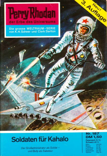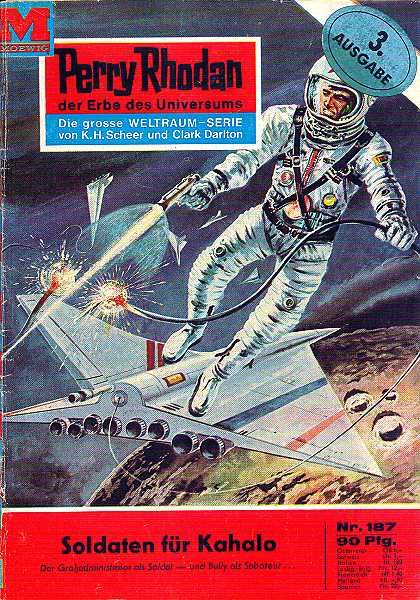 Der Großadministrator als Soldat — und Bully als Saboteur .. . Zyklus: Das zweite Imperium Die Hauptpersonen des Romans: Perry Rhodan — Großadministrator des Solaren Imperiums —und Soldat für Kahalo. Mory Abro — Eine schöne Frau, die Angst hat. Melbar Kasom — Der Ertruser benimmt sich wie ein Elefant im Porzellanladen. Atlan — Er konstatiert, daß die Terraner verwirrt sind. Andre Noir — Der Mutant geht auf die Suche nach Unsichtbaren. Reginald Bull — Er betätigt sich als Saboteur im All. Okra, Karr und Perk — Seltsame Wesen des Planeten Kahalo.
