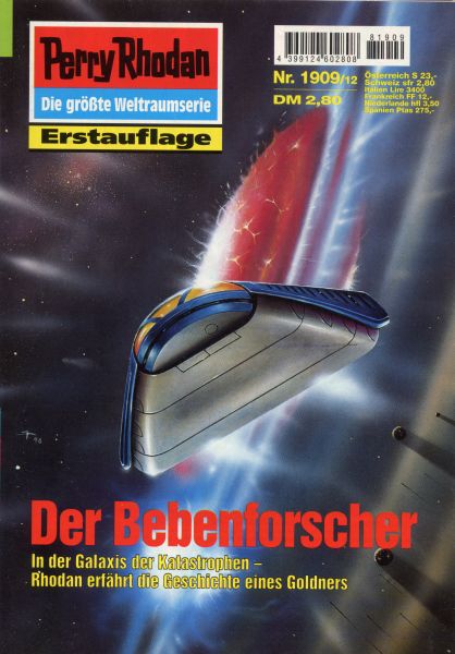 In der Galaxis der Katastrophen - Rhodan erfährt die Geschichte eines Goldners Die Hauptpersonen des Romans: Eismer Störmengord - Der Goldner erzählt seine Geschichte. Perry Rhodan - Der Terraner sammelt Informationen in einer fremden Galaxis. Janthos - Der Prolongide wird zum guten Freund. Bomicu Mes Gebertan - Der Vrouber setzt sich hohe Ziele.
