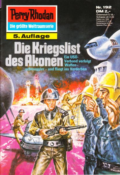 Ein USO-Verband verfolgt Waffenschmuggler — und fliegt ins Verderben . .. Zyklus: Das zweite Imperium Die Hauptpersonen des Romans: Ablebur — Ein listenreicher Akone. Troat — Kommandant eines akonischen Wachgeschwaders. Tan-Pertrec — Ein Blue, der aus einer verlorenen Schlacht die Konsequenzen zieht. Admiral Rote Nayhar — Der Sieger wird zum Verlierer doch er gibt nicht auf. Major Aitken — Um Perry Rhodan nicht zu verraten, geht der Terraner in den Tod. Nome Tsdiato und Dan Picot - Zwei Männer, die ihr Schiff nicht vergessen können. Perry Rhodan — Der Administrator denkt sich einen Feind aus, um die Moral seiner Leute zu heben.