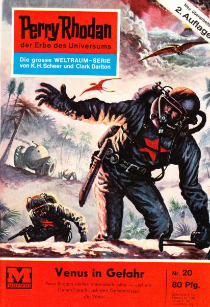 Venus in Gefahr Perry Rhodan verliert viereinhalb Jahre - und ein General greift nach den Geheimnissen der Venus... Die Hauptpersonen des Romans: Perry Rhodan - Der Herr der Dritten Macht. Reginald Bull - Perry Rhodans Freund und engster Vertrauter. Oberst Freyt - Ein Hypnoblock raubt ihm die Initiative. General Tomisenkow - Er hat den Befehl, einen Planeten zu erobern. Major Deringhouse - Er macht die Erfahrung, daß Maschinenwaffen irdischer Herkunft den Produkten arkonidischer Supertechnik durchaus gefährlich werden können. Tako Kakuta - Er ist der einzige, der die Sperre des Positronengehirns überwinden kann. Crest - Seine hochgespannten Hoffnungen sind grausam enttäuscht worden.