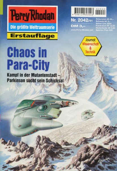 Kampf in der Mutantenstadt - Parkinson sucht sein Schicksal Zyklus: Die Solare Residenz Die Hauptpersonen des Romans: Koo Parkinson - Der Sprecher der Mutanten von Para-City verfolgt einen unglaublichen Plan. Yonder K'rigan - Der Telekinet erinnert sich stückweise an seine düstere Vergangenheit. Startac Schroeder - Der Teleporter gründet eine Art Oppositionsbewegung gegen Parkinson. Nara Jallieg - Die junge Positronik-Kommunikatorin wird zum Opfer brutaler Gewalt. Rune Karuga - Das Verhalten des Intuitiv-Mutanten löst eine Kettenreaktion aus. Spätestens nachdem die Truppen des Kristallimperium den Planeten Ertrus besetzt haben, warten die Bewohner der Milchstraße auf den Ausbruch eines großen galaktischen Krieges. Doch nach wie vor schrecken Perry Rhodan und die Führung der Liga Freier Terraner davor zurück: Ein offener Konflikt mit Arkon würde Milliarden von Todesopfern kosten und die Milchstraße in ein Schlachtfeld verwandeln. Die Terraner setzen im Herbst des Jahres 1303 NGZ eher auf geheimdienstliche Vorstöße und auf Diplomatie. Der Versuch von Julian Tifflor, dem Residenz-Minister für Liga-Außenpolitik, in der Eastside der Galaxis ein Bündnis mit den Blues-Nationen zu schmieden, ist ohne Ergebnis zu Ende gegangen. Dabei weiß niemand außer den Teilnehmern der Geheimkonferenz, was auf dem abgeschiedenen Planeten Santanz wirklich geschehen ist... Für die Terraner gibt es allerdings auf dem eigenen Planeten ein weiteres Problem: die jungen Monochrom-Mutanten, die sich in eine Stadt in den Anden zurückgezogen haben. Dort warten rund 35.000 junge Menschen auf ihren Tod, dem sie eigentlich entgehen wollen. Sie haben sich von der Außenwelt abgeschirmt und wollen keinen Kontakt zu der terranischen Regierung. Doch in der Abgeschiedenheit des südamerikanischen Andentals beginnt das CHAOS IN PARA-CITY...