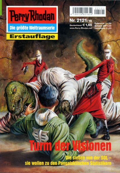 Die sieben von der SOL - sie wollen zu den Pangalaktischen Statistikern Zyklus: Das Reich Tradom Die Hauptpersonen des Romans: Trim Marath - Der Para-Defensor bekommt auf dem Planeten Vision einen seltsamen Kontakt. Atlan - Der Arkonide möchte Informationen von den Pangalaktischen Statistikern. Chaparu-27 - Der kleine Roboter zeigt seinen Besuchern die Sehenswürdigkeiten des Planeten. Startac Schroeder - Der Teleporter forscht in den Kosmologischen Mediotheken. Icho Tolot - Der Haluter entpuppt sich wieder einmal als Retter in der Not. Im Dezember 1311 Neuer Galaktischer Zeitrechnung operiert die SOL im direkten Umfeld der Galaxis Wassermal. Die Reise über die unglaubliche Entfernung von fast 700 Millionen Lichtjahre wurde aus gutem Grund zurückgelegt: Die Besatzungsmitglieder unter dem Kommando des Arkoniden Atlan wollen in Kontakt zu den Pangalaktischen Statistikern treten, um so endlich weitere Informationen über Thoregon und die Helioten zu erhalten. Die ersten Hürden konnten bereits genommen werden. Zusammen mit sechs Begleitern hat Atlan es geschafft, die seltsame LOTTERIE zwar nicht zu gewinnen, aber dennoch eine Passage ins Innere der Galaxis Wassermal zu erhalten. An Bord einer Malischen Dschunke treten sie die Reise zum geheimnisvollen Planeten Vision an. Eine Mordserie lässt die Reise nicht ganz so angenehm verlaufen, wie es sich die Galaktiker im voraus vorgestellt haben. Doch dann erreichen sie das spirituelle Zentrum der Galaxis und sehen endlich den TURM DER VISIONEN...