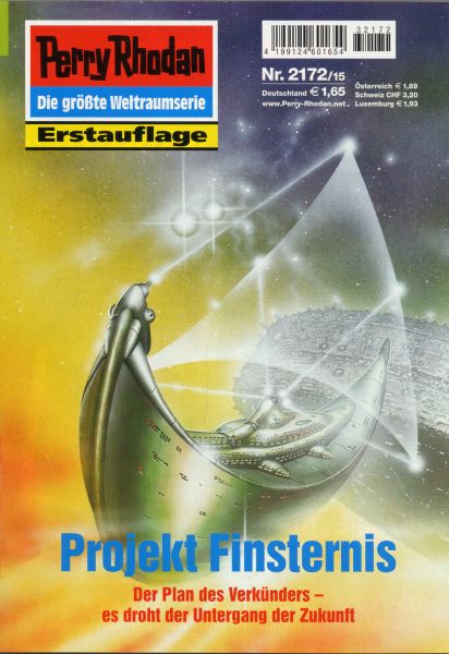 Der Plan des Verkünders - es droht der Untergang der Zukunft Zyklus: Das Reich Tradom Die Hauptpersonen des Romans: Perry Rhodan - Der Terraner ist mit seinen Begleitern in der Vergangenheit der Galaxis Tradom gestrandet. Ascari da Vivo - Die Arkonidin begibt sich auf eine Mission zum Planeten Caldera. Fian DeGater - Der Eltane hat das Projekt Finsternis eingeleitet und vorangetrieben. Eifage Agehr - Die Stellvertreterin des Verkünders empfängt Besucher aus der Zukunft. Anguela - Der Verkünder der Superintelligenz VAIA kann sich die Zeitschleife kaum vorstellen. Im April 1312 Neuer Galaktischer Zeitrechnung hat sich die Lage am Sternenfenster vorerst beruhigt: Der mit technischen Hilfsmitteln gigantischer Natur geöffnete Durchgang in die fremde Galaxis Tradom ist nach wie vor in der Hand der Terraner und ihrer Verbündeten. Alle Angriffe der Inquisition der Vernunft konnten bislang abgewehrt werden. Um dauerhaften Frieden für die Bewohner der Milchstraße zu sichern, müssen Perry Rhodan und seine Mitstreiter allerdings den Kampf gegen die Herrscher des Reiches Tradom intensivieren. Beim Versuch, das letzte Raumschiff der Eltanen zu retten, werden die Terraner von der LEIF ERIKSSON und die Arkoniden von der KARRIBO in die Vergangenheit geschleudert. Perry Rhodan und seine Begleiter erkennen, dass sie 160.000 Jahre von der Gegenwart entfernt sind, in einer Zeit vor dem Reich Tradom. Beherrscht wird die Galaxis zu jener Zeit vom Reich der Güte. Es ist gewissermaßen ein Utopia. Und doch rührt sich Widerstand ... Perry Rhodan und seine Begleiter wissen, dass dieser Widerstand im Ende des Reiches der Güte gipfeln wird - eine schreckliche Aussicht. Dabei hatten die Eltanen bei ihrer Zeitreise einen ganz konkreten Plan. Es war letztlich das PROJEKT FINSTERNIS ...