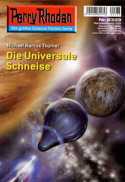 Beim Geheimbund der Friedensfahrer - ein Terraner lernt die Organisation kennen Zyklus: TERRANOVA Die Hauptpersonen des Romans: Alaska Saedelaere - Der Mann mit der Maske wird mit der Heißen Legion konfrontiert. Perry Rhodan - Der Aktivatorträger lauscht dem Bericht seines alten Freundes. Xa-Va-Riin Qaar - Der alte Artuche sucht einen Nachfolger. Chyndor - Ein Friedensfahrer sorgt sich um das Schicksal der Galaxis Hangay. Inhalt: Über die Welten der Milchstraße bricht im Jahr 1344 Neuer Galaktischer Zeitrechnung - dies entspricht dem Jahr 4931 alter Zeitrechnung - eine Veränderung herein, wie sie sich niemand hat vorstellen können: Die Terminale Kolonne TRAITOR, eine gigantische Raumflotte der Chaosmächte, greift nach der Galaxis. Im unmittelbaren galaktischen Umfeld der Milchstraße soll in der Sterneninsel Hangay eine so genannte Negasphäre entstehen, ein absolut lebensfeindlicher Raum. Die Menschheitsgalaxis soll dieser kosmischen Region als »Ressource« zugeführt werden. Der Nukleus, ein Geistwesen, beschwört Perry Rhodan, dass Terra und das Solsystem nicht an die Mächte des Chaos fallen dürfen. Tatsächlich gelingt es, den Truppen des Chaos das Eindringen vorläufig zu verwehren. Niemand weiß jedoch, wie dieser Schutz dauerhaft gestaltet oder wie man gegen die Kräfte des Chaos aktiv werden kann. Dann naht die vom Nukleus versprochene Hilfe: Die geheimnisvollen Friedensfahrer schicken zwei ihrer Vertreter nach Terra. Es sind Alaska Saedelaere und Kantiran Rhodan - und diese berichten über DIE UNIVERSALE SCHNEISE ...