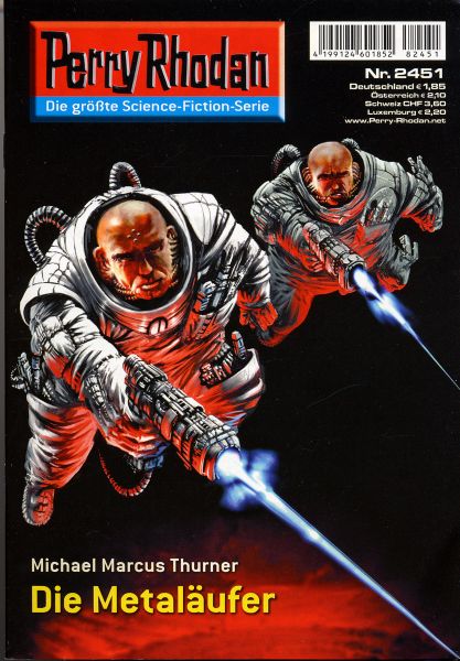In der Isolation der Weißen Welt - Terraner stoßen auf seltsame Helfer Zyklus: Negasphäre Die Hauptpersonen des Romans: Perry Rhodan - Der Terraner sucht nach Verbündeten auf Evolux. Castun Ogoras - Der Kommandant der Yakonto bringt einen Ritter der Tiefe zum Haupt seines Volkes. Mondra Diamond - Die Terranerin begegnet Metaläufern. Ekatus Atimoss - Einmal mehr helfen die Parapolarisatoren des Duals seinen ehemaligen Feinden. Inhalt: Die Lage für Perry Rhodan und die Menschheit ist verzweifelt: Eine gigantische Raumflotte, die Terminale Kolonne TRAITOR, hat die Planeten der Milchstraße besetzt. Sie wirkt im Auftrag der Chaotarchen, und ihr Ziel ist kompromisslose Ausbeutung. Die Milchstraße mit all ihren Sonnen und Planeten soll als Ressource genutzt werden, um die Existenz einer Negasphäre abzusichern. Dieses kosmische Gebilde entsteht in der nahen Galaxis Hangay - ein Ort, an dem gewöhnliche Lebewesen nicht existieren können und herkömmliche Naturgesetze enden. Mit verzweifelten Aktionen gelingt es den Menschen auf Terra und den Planeten des Sonnensystems, dem Zugriff der Terminalen Kolonne standzuhalten. Sie verschanzen sich hinter dem TERRANOVA-Schirm und versuchen, die Terminale Kolonne zumindest zu stören. Um dem drohenden Untergang der menschlichen Zivilisation etwas Massives entgegensetzen zu können, greift Rhodan zu einem wagemutigen Plan: Mit dem Raumschiff JULES VERNE reist er in die Vergangenheit rund zwanzig Millionen Jahre vor Beginn der Zeitrechnung, um zu beobachten, auf welche Weise damals die Entstehung einer Negasphäre verhindert wurde. Nachdem die Mission erfüllt ist, kehrt die JULES VERNE wieder zurück in ihre Gegenwart, aufgrund einer Beschädigung landet sie jedoch nicht in der heimatlichen Milchstraße, sondern bleibt viele Millionen Lichtjahre entfernt in der Galaxis Tare-Scharm. Dort stoßen sie auf DIE METALÄUFER ...