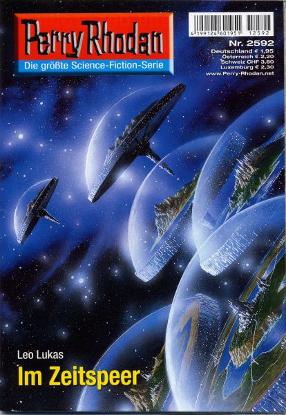 Er nimmt den finalen Gang auf sich - und muss leiden wie kein Mensch zuvor Zyklus: Stardust Die Hauptpersonen des Romans: Perry Rhodan - Der Terranische Resident steht an der Schwelle zum PARALOX-ARSENAL. Julian Tifflor - Er durchlebt schlimme Zeiten. Krepsh und Velrit - Die Geschwister haben als Fremdenführer die Ruhe weg. Urga Chremtaka - Die Wirtin einer KyBaracke sähe ihren Namen gern doppelt unterstrichen. Duleymon die Siebenundsechzigste - Die Monarchin weiß, was sie will und wie sie es bekommt. Inhalt: In der Milchstraße schreibt man das Jahr 1463 Neuer Galaktischer Zeitrechnung - das entspricht dem Jahr 5050 christlicher Zeitrechnung. Seit einiger Zeit tobt der Kampf um die Polyport-Höfe, der mehrere Galaxien umspannt. Die sogenannten Polyport-Höfe sind Zeugnisse einer längst vergangenen Zeit, mit denen sich gigantische Entfernungen überbrücken lassen. Als die Frequenz-Monarchie aus einem jahrtausendelangen Ruheschlaf erwacht, beanspruchen ihre Herren, die Vatrox, sofort die Herrschaft über das Transportsystem und mehrere Galaxien. Die Terraner und ihre Verbündeten wehren sich erbittert - und sie entdecken die Achillesferse der Vatrox. Rasch gelingen ihnen entscheidende Schläge in der Milchstraße sowie in Andromeda. Allerdings sind damit nicht alle Gefahren beseitigt. Mit den Vatrox hängen zwei rivalisierende Geisteswesen zusammen, die weitaus bedrohlicher für die Menschheit sind. Gleichzeitig droht eine noch schlimmere Gefahr: der Tod von ES, jener Superintelligenz, mit der Perry Rhodan und die Menschheit auf vielfältige Weise verbunden sind. Rhodan muss das PARALOX-ARSENAL finden, um ES helfen zu können. Dabei ist ihm Lotho Keraete eine große Hilfe, aber die Lösung findet sich schließlich IM ZEITSPEER ...