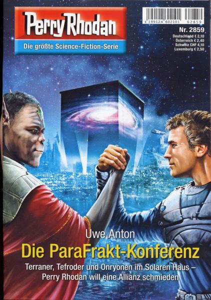 Zyklus: Die Jenzeitigen Lande Terraner, Tefroder und Onryonen im Solaren Haus – Perry Rhodan will eine Allianz schmieden Die Hauptpersonen des Romans Perry Rhodan – Der Terraner steht hinter der ParaFrakt-Konferenz. Cai Cheung – Die Politikerin überlässt die Konferenzleitung anderen. Shekval Genneryc – Der Onryone äußert Vorbehalte. Sybrand Herzog – Der Stellvertreter Attilar Leccores misstraut den Tiuphoren. UFo – Der Vorsitzende des Galaktikums begibt sich ins Solsystem Inhalt Auf der Erde schreibt man das Jahr 1518 Neuer Galaktischer Zeitrechnung (NGZ). Die Menschen haben mit der Liga Freier Terraner ein großes Sternenreich in der Milchstraße errichtet, sie leben in Frieden mit den meisten bekannten Zivilisationen. Doch wirklich frei ist niemand. Die Milchstraße wird vom Atopischen Tribunal kontrolliert. Dessen Vertreter behaupten, nur seine Herrschaft verhindere den Untergang – den Weltenbrand – der gesamten Galaxis. Während sich der Arkonide Atlan ins vermutete Herz dieser Macht begeben hat – die Ländereien jenseits der Zeit –, reist Perry Rhodan durch vergangene Zeiten, um der Gegenwart Hilfe zu bringen. Denn die Gegenwart, wie er sie kennt, wird nicht nur durch die Atopen bedroht, sondern auch durch die brutalen ¬Tiuphoren, die durch einen Zeitriss aus tiefster Vergangenheit zurückgekehrt sind. Es gelingt Perry Rhodan, eine Abwehrwaffe gegen die Indoktrinatoren – die gefährlichste Waffe der Tiuphoren – zu entwickeln: Diese ParaFrakt genannte Technologie muss er nun möglichst schnell galaxisweit verbreiten, um gegen die über 45.000 Tiuphorenraumschiffe bestehen zu können. Sein Weg dazu führt über DIE PARAFRAKT-KONFERENZ ...
