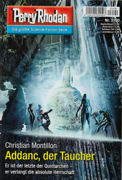 Charaktere. Addanc, der Taucher Anzu Gotjian Zou Skost Osh’gemta Beschreibung In der Milchstraße schreibt man das Jahr 2072 Neuer Galaktischer Zeitrechnung. Dies entspricht dem Jahr 5659 nach Christus. Über dreitausend Jahre sind vergangen, seit Perry Rhodan seiner Menschheit den Weg zu den Sternen geöffnet hat. Noch vor Kurzem wirkte es, als würde sich der alte Traum von Partnerschaft und Frieden aller Völker der Milchstraße und der umliegenden Galaxien endlich erfüllen. Die Angehörigen der Sternenvölker stehen für Freiheit und Selbst-bestimmtheit ein, man arbeitet intensiv zu¬sammen. Doch entwickelt sich in der kleinen Galaxis Cassiopeia offensichtlich eine neue Gefahr. Dort ist FENERIK gestrandet, ein sogenannter Chaoporter. Nachdem Perry Rhodan und seine Gefährten versucht haben, gegen die Machtmittel dieses Raumgefährts vorzugehen, bahnt sich eine unerwartete Entwicklung an. FENERIK stürzt auf die Milchstraße zu. Mit an Bord ist Anzu Gotjian, die Transmitterspezialistin, Mutantin und Heldin wider Willen. Zwei der fünf Quintarchen sind bereits bei der Havarie gestorben, die Quintarchin Schomek, die Lohe, wird von Alaska Saedelaere getötet, als sie ihn als neuen Quintarchen rekrutieren will. Und Farbaud, der im Glanz, wird von den Galaktikern entführt. Nun bleibt nur noch ein einziger Quintarch handlungsfähig an Bord des Chaoporters. ADDANC, DER TAUCHER ...