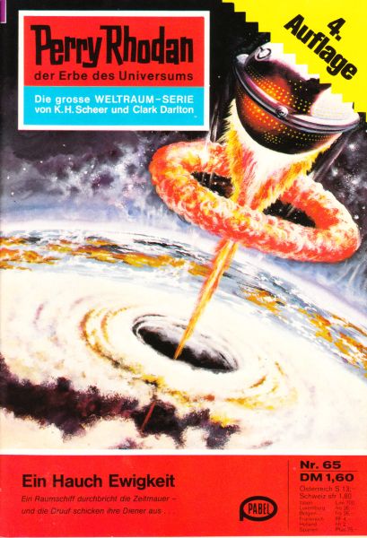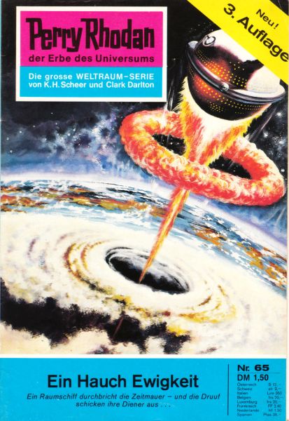 Ein Raumschiff durchbricht die Zeitmauer - und die Druuf schicken ihre Diener aus . . . Zyklus: Atlan und Arkon Die Hauptpersonen des Romans: Perry Rhodan — Ist es nur ein glücklicher Zufall, der den Ad¬ministrator des Solaren lmperiums davor bewahrt, im „Meer der Zeit" zu versinken...? Reginald Bull — Perry Rhodans Freund und Stellvertreter. Erb — Gustav VI. hat ihn richtig beraten. Leutnant Marcel Rous — Der Leiter der verschollenen Zeit-Expedition. Gucky — Der Mausbiber sieht einen Geist. Ras Tschubai — Em Teleporter des Mutantenkorps. Kruukh — Ein gehorsamer Diener seines Herrn.