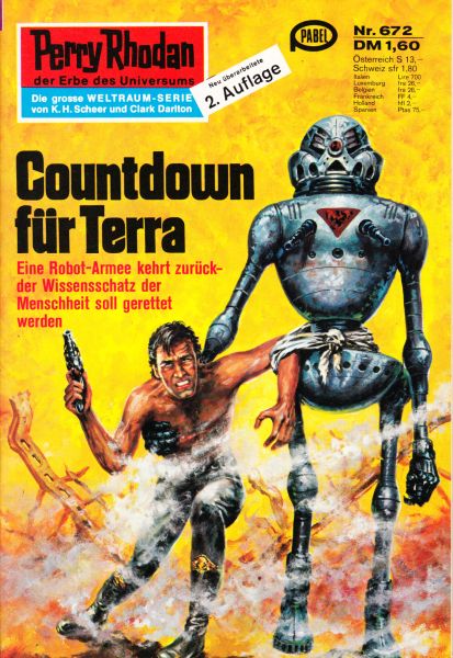 Eine Robot-Armee kehrt zurück - der Wissensschatz der Menschheit soll gerettet werden Zyklus: Das Konzil Die Hauptpersonen des Romana: Perry Rhodan — Der Großadministrator bereitet die Flucht der Menschheit vor. Muszo Hetschic — Kommandant eines geheimen USO-Stützpunkts. Dr. Fitring Ammun — Ein Wissenschaftler wird zum Agitator. Terit Nemetz — Ein fanatischer Anhänger Dr. Ammuns. Atlan — Der Lordadmiral sorgt für die Rückführung einer Robot-Armee. Geoffry Abel Waringer — Der Hyperphysiker unterhält sich mit Nathan.
